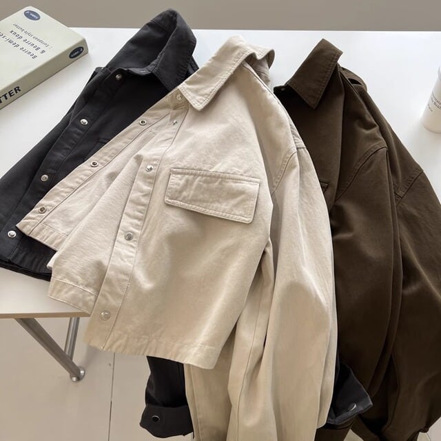 このワークウェアジャケットは、独自のBF(ビッグフィット)デザインで、リラックス感のある着心地を実現しています。ゆったりとしたショート丈により、さまざまなボトムスと合わせやすく、スタイルを引き立てます。ラペルデザインは、シンプルながらも洗練された印象を演出し、韓国風のトレンドを取り入れたデザインが魅力です。秋冬のコーディネートにぴったりな一枚です!