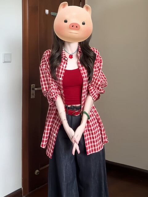 夏の特別な瞬間を彩る、おしゃれで魅力的な赤いチェック柄の長袖シャツが新たに登場しました!ファッション性と機能性を兼ね備えたこのトップスは、ドーパミンを刺激するデザインが特徴です。
