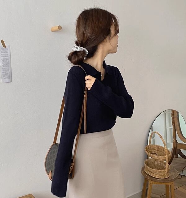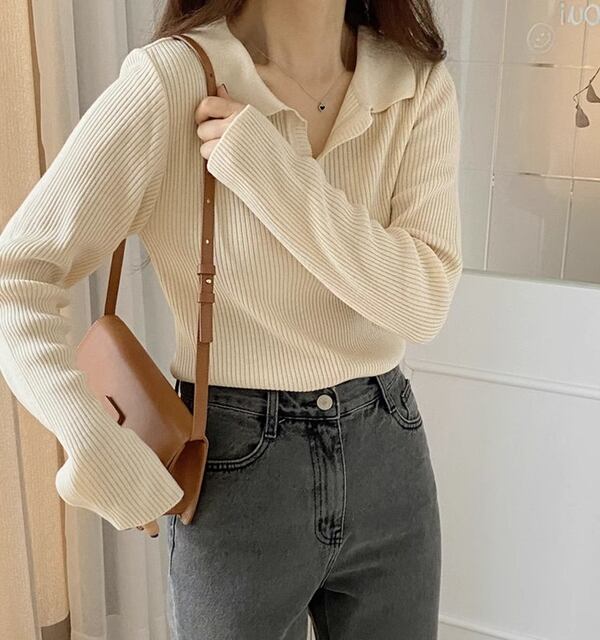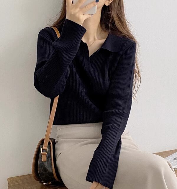 このニットセーターは、柔らかく肌触りの良い素材を使用しており、心地よい着心地を実現しています。ポロカラーのデザインが上品さを引き立て、リラックスした印象を与えます。デニムやスカートと合わせるだけで、カジュアルから少しキレイめなスタイルまで幅広いシーンで活躍すること間違いなしです!春秋に大活躍するアイテムです。