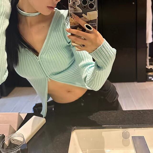 柔らかな素材を使用しており、肌触りが良く、快適な着心地を楽しめます!Vネックデザインが顔周りをすっきり見せ、シルエットを美しく演出します。カジュアルなデニムから、エレガントなスカートまで、多様なボトムスとのコーディネートが可能で、日常使いからお出かけまで幅広く活躍すること間違いなしです!この春秋のワードローブにぜひ加えて、あなたの個性を表現していただければと思います。