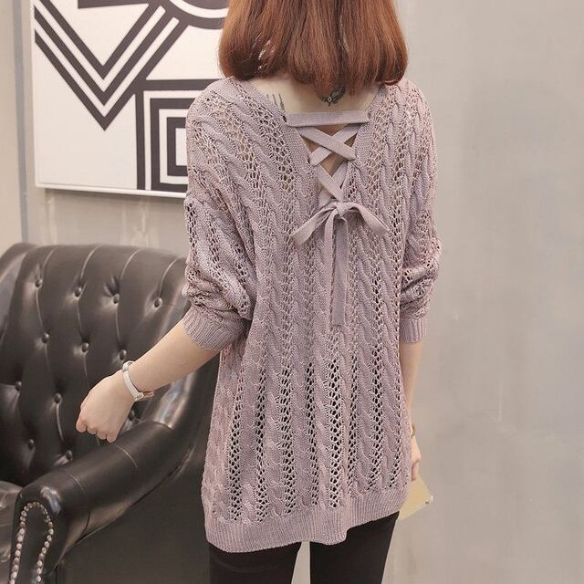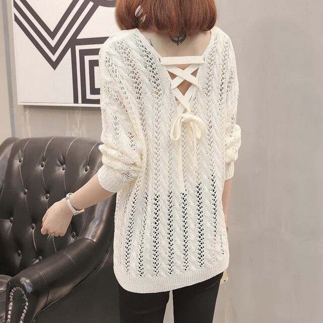 この薄手で透かし編みのニットセーターをあなたのワードローブに加えて、春秋のファッションを存分に楽しんでいただければ幸いです!