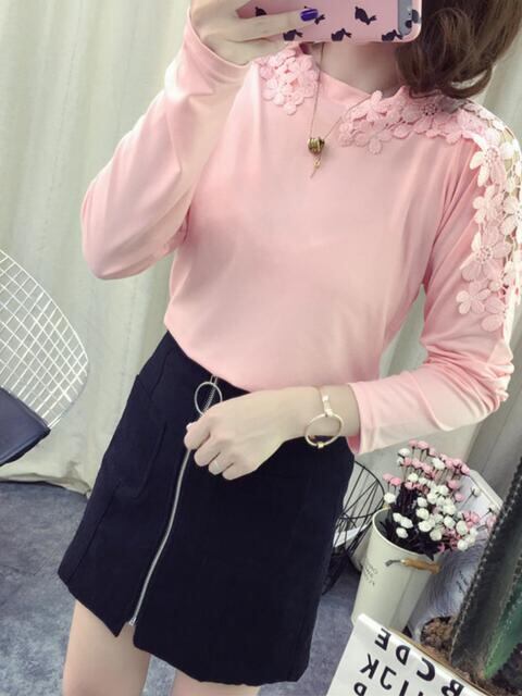 2022年新作 レディース 無地 長袖Tシャツ、秋物に最適、ゆったりフィット、レースと透かし彫り、学生向けトップス、ベースレイヤー