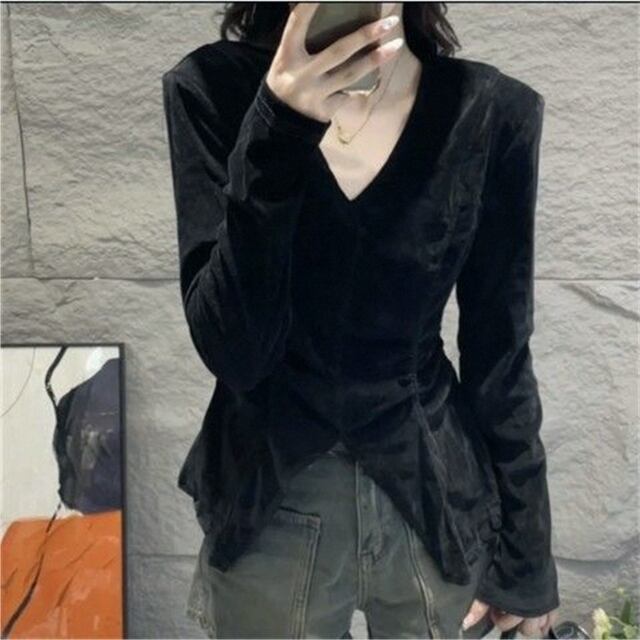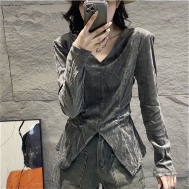 このイレギュラーベルベットトップスをあなたのワードローブに加えて、春秋のファッションを存分に楽しんでいただければ幸いです!