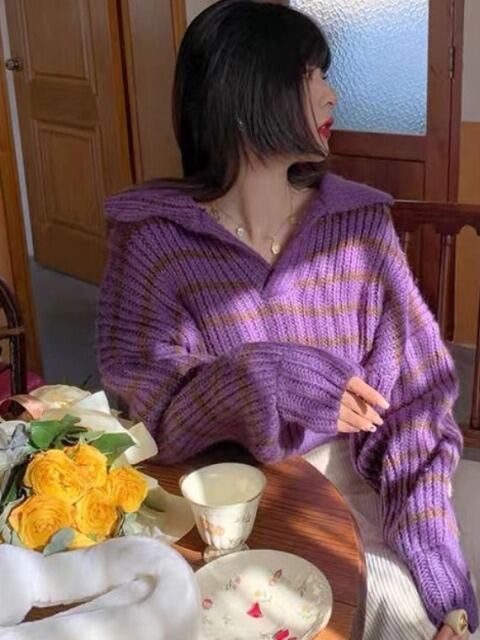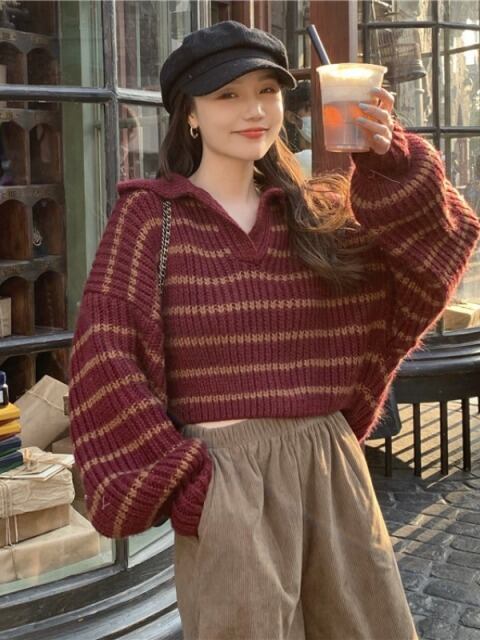 このレディースストライプセーターをあなたのワードローブに加えて、秋のファッションを存分に楽しんでいただければ幸いです!