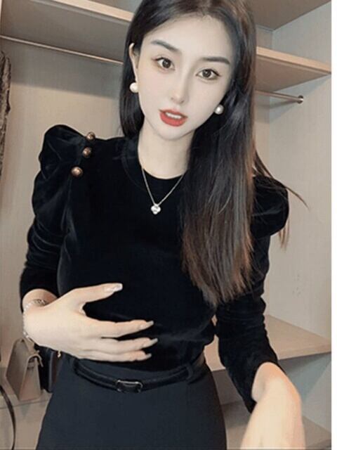 2025年新作 パフスリーブ長袖Tシャツ(レディース)、ファッショナブルで着回しの効くスタイリッシュなベースレイヤー、ベルベットトップ