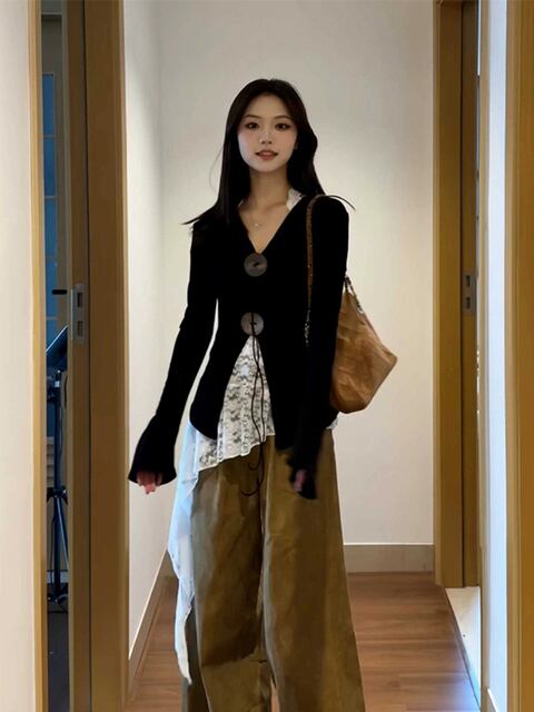 **2024年初秋新作!エレガントなフレンチスタイルの黒ウールニットセーター、季節のトレンドを先取りするマストアイテム!**