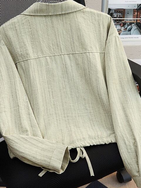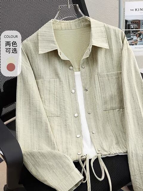 シングルブレストコート、2025年秋の新作レディースカジュアルシャツ、フレッシュなラペル、ドローストリング、ドロップショルダースリーブ、ショートトップス。