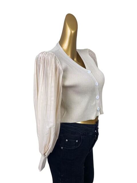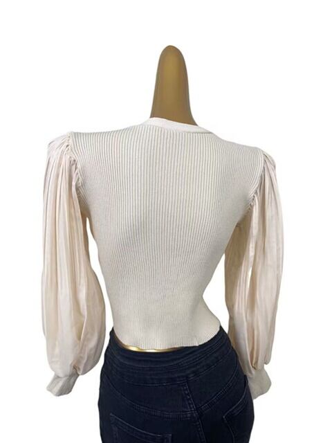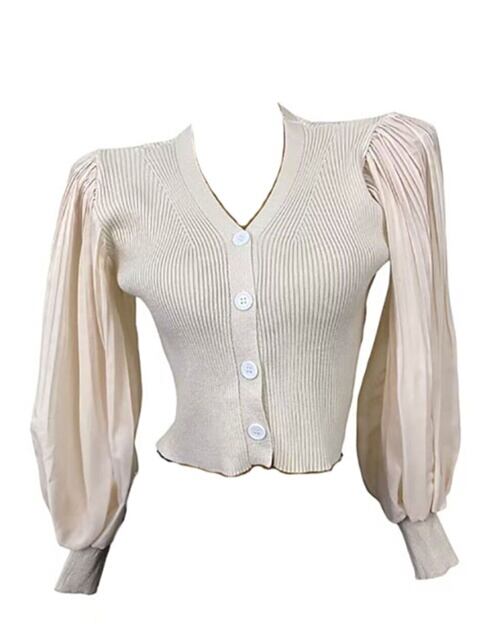 洗練されたメッシュ素材のランタンスリーブショートトップス、ニットカーディガン、セーターなど、春秋新作のデザイナーズレディースウェア。