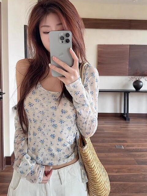 このカーディガンは、軽やかなメッシュ素材によるダブルレイヤーデザインが特徴!花柄が季節感を演出し、柔らかな印象を与えます。長袖スタイルは日焼け止め効果があり、ちょっと肌寒い日にもぴったり。キャミソールとのツーピースセットで、様々なコーディネートを楽しむことが可能です。ジーンズやスカートの上にさらりと羽織るだけで、一気に洗練されたスタイルが完成します。このカーディガンを着て、秋のファッションを心ゆくまで楽しんでください!