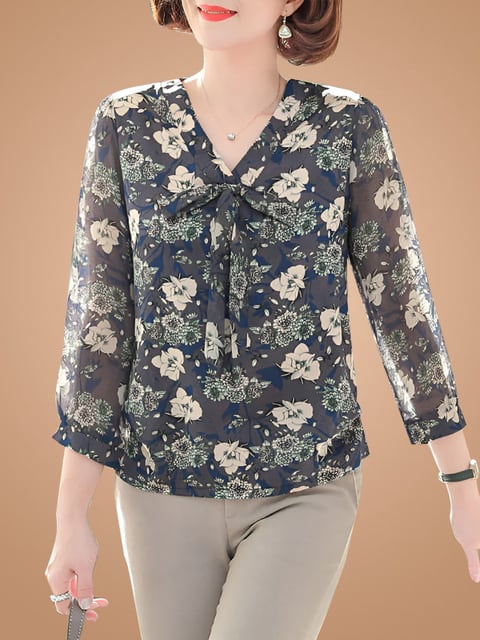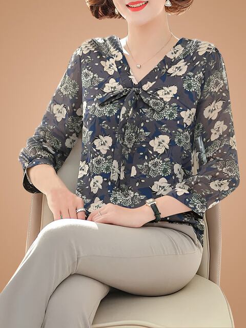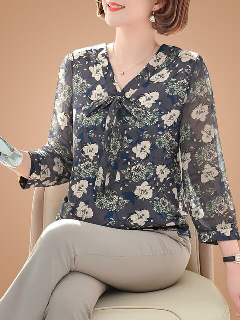 2026年初春新作シフォンシャツTシャツ(中高年女性向け)、秋物トップス(中高年女性向け)、エレガントブラウス