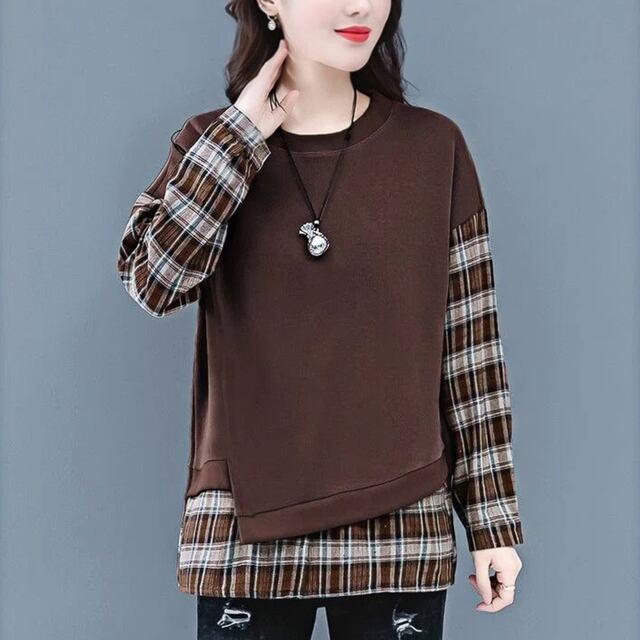 **2026年春秋新作!プラスサイズ レディース服 フェイクツーピース 長袖ラウンドネック スウェットシャツで、快適でおしゃれなコーディネートを楽しもう!**
