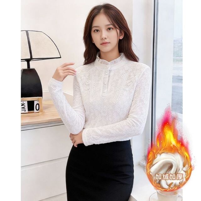 この新作のレースシャツは、スリムフィットデザインで女性らしいシルエットを引き立てる一着です!フリース裏地が施されており、秋冬の寒い季節にぴったりの暖かさを提供します。
