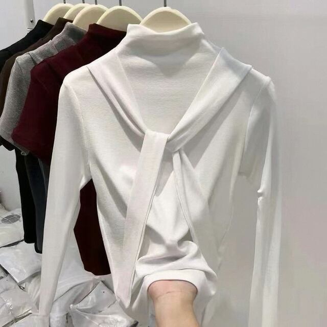 女性向けのスタイリッシュなショール風長袖ベースレイヤートップ、秋冬新作、タイアップトップ付きスリムフィットTシャツ(ツーピース風)