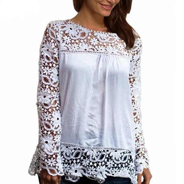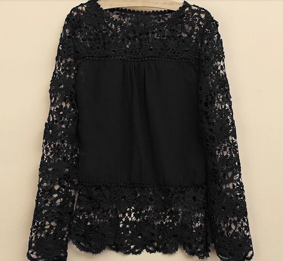**2015年秋新作!女性向けのプラスサイズ長袖透かしレースブラウスで、エレガントなコーディネートを楽しもう!**