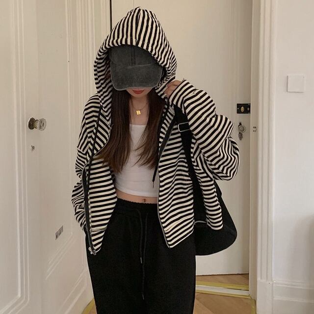 この新作のストライプ柄薄手ジップアップトップス/ジャケットは、春秋にぴったりなデザインが特徴の一着です!ゆったりとしたフィット感ながら、スリムに見えるスタイルを実現し、デニムやスカートとも絶妙にマッチします。長袖のショート丈なので、さまざまなシーンで活躍すること間違いなしです!