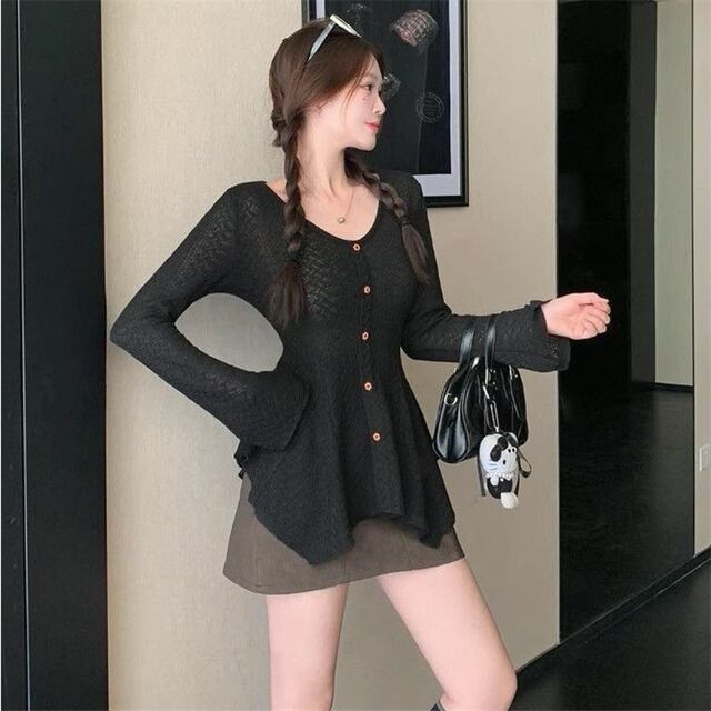 この新作のVネック長袖ニットトップスは、春秋にぴったりなデザインが特徴の一着です!スリムフィットのシルエットが、スタイルを美しく見せるだけでなく、独自の不規則なデザインが個性的な印象を演出します。さりげない魅惑感が、あなたの魅力を一層引き立てます!