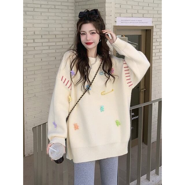プラスサイズ レディース服 2026年春秋新作 韓国風 ゆったりとしたプルオーバーセーター レディースデザイン ニットウェア トップス