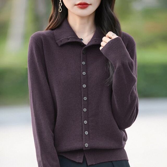 ラペル付きグレーニットセーター レディース 春秋用カーディガンセーター 新スタイル プラスサイズ スリム効果 高級長袖トップス