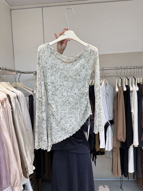 秋の新作:韓国風エレガントオフショルダータイダイ薄手アウター、エレガントな不規則なフリルエッジの長袖