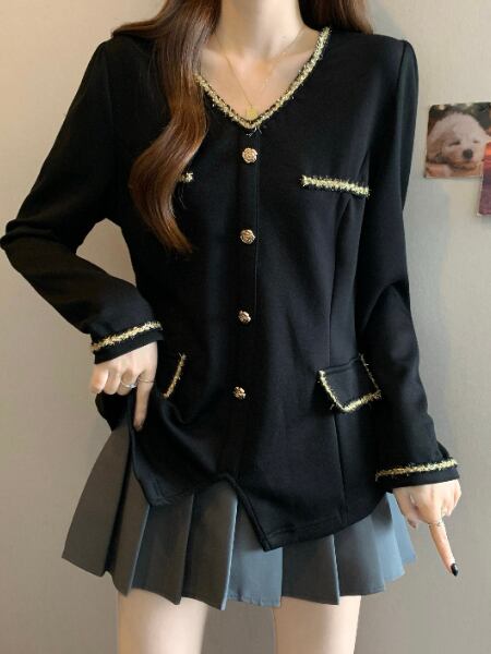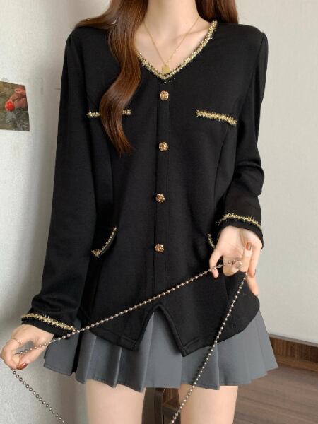 このエレガントなVネック、タッセル装飾の長袖シャツで、春秋冬のファッションを心ゆくまで楽しんでいただければ幸いです!
