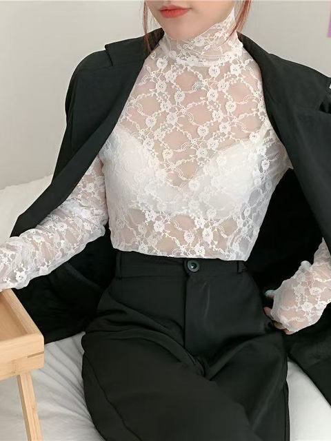 **2025年春秋新作!ハイネックのレースベースレイヤートップで、シックで華やかなスタイルを楽しもう!**