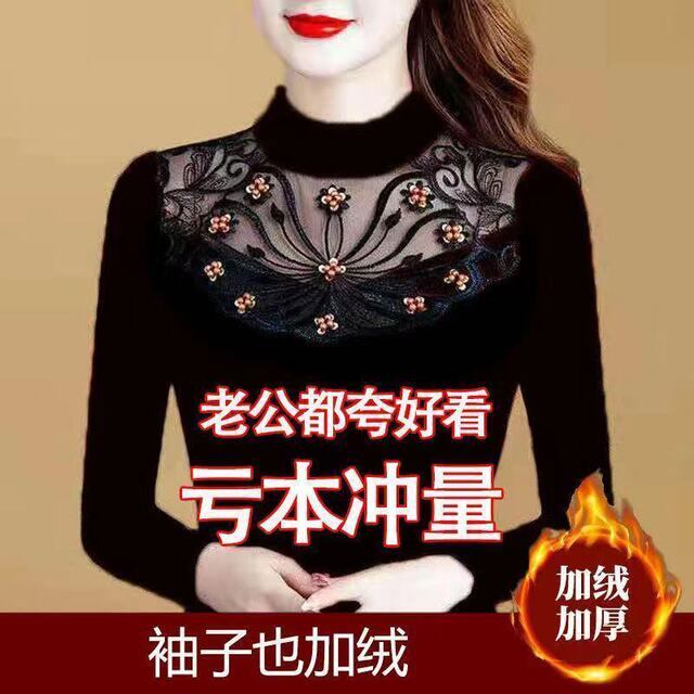 薄手/フリース裏地付き 2021年秋冬新作 レディース ベースレイヤー 長袖Tシャツ プラスサイズ 暖かいレーストップ