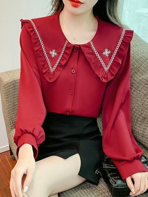 こちらのレディースピーターパンカラー刺繍シャツは、春秋にぴったりの一着です!柔らかく軽やかな素材が、リラックスした着心地を実現し、日常のカジュアルなシーンから特別なイベントまで幅広く活躍します!