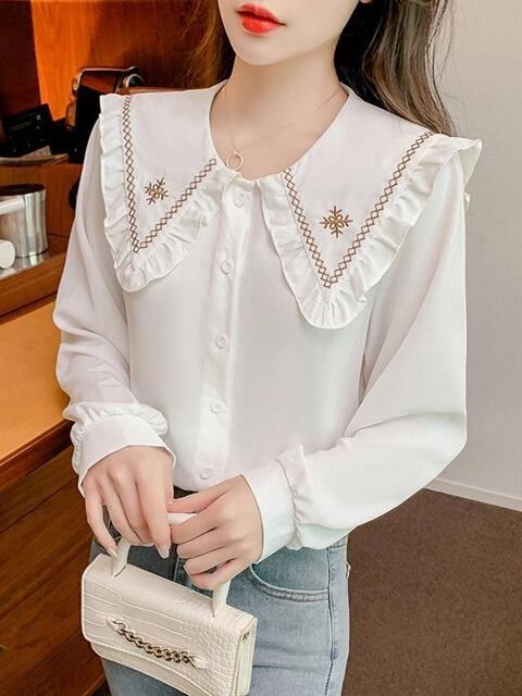 このキュートなピーターパンカラー刺繍シャツで、春秋のファッションを心ゆくまで楽しんでいただければ幸いです!