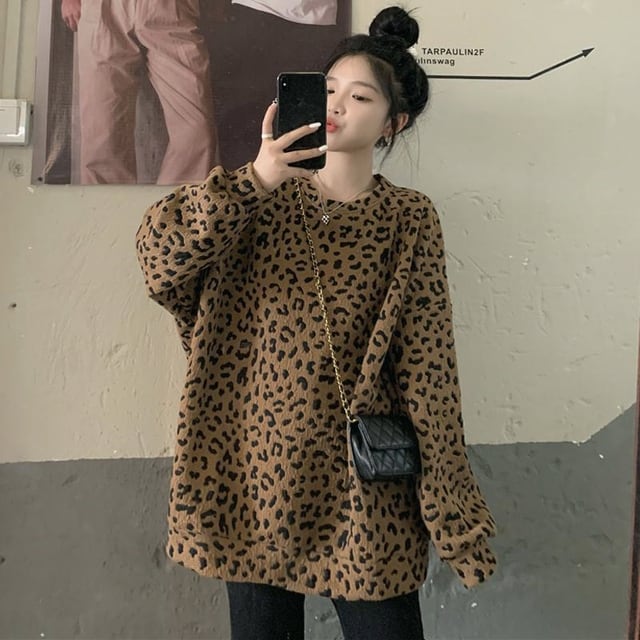 この厚手レオパード柄スウェットシャツで、秋冬のファッションを心ゆくまで楽しんでいただければ幸いです!