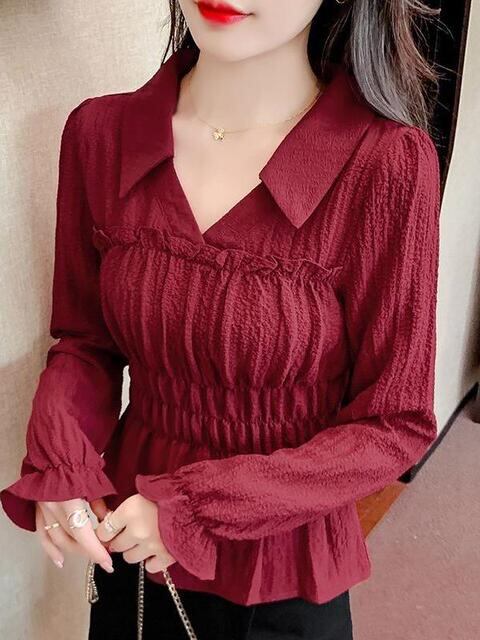 **2026年春秋新作!フレンチスタイルのエレガントなレディースシャツで、シックで可愛らしい装いを楽しもう!**