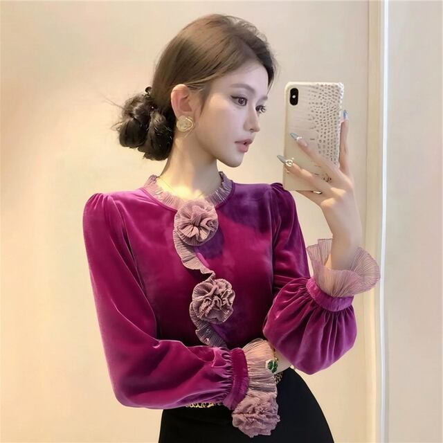 **2026年春秋新作!フレンチスタイルのレース襟ベルベットトップスで、エレガントな雰囲気を楽しもう!**