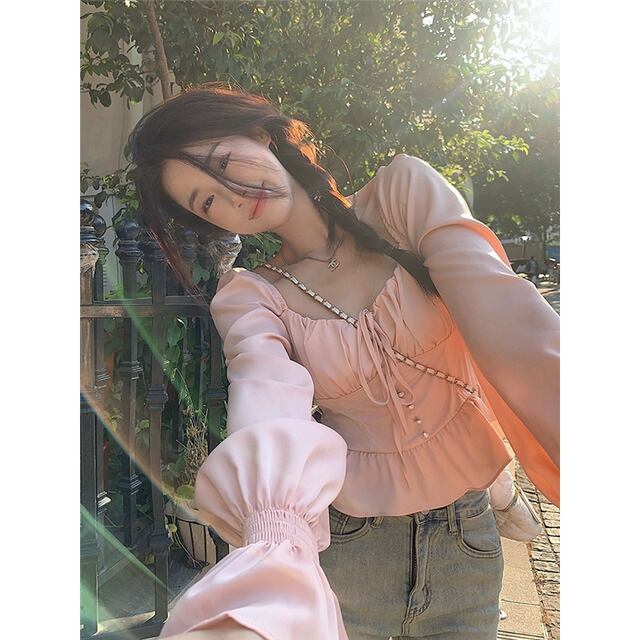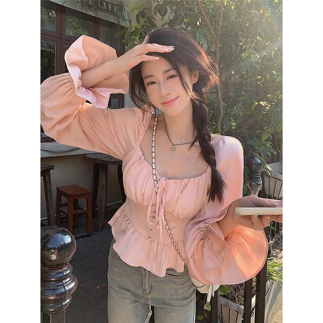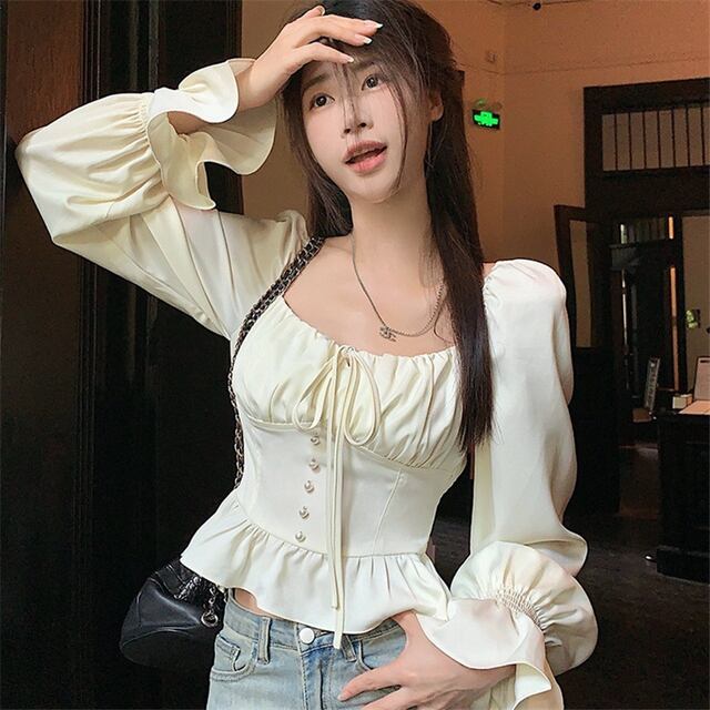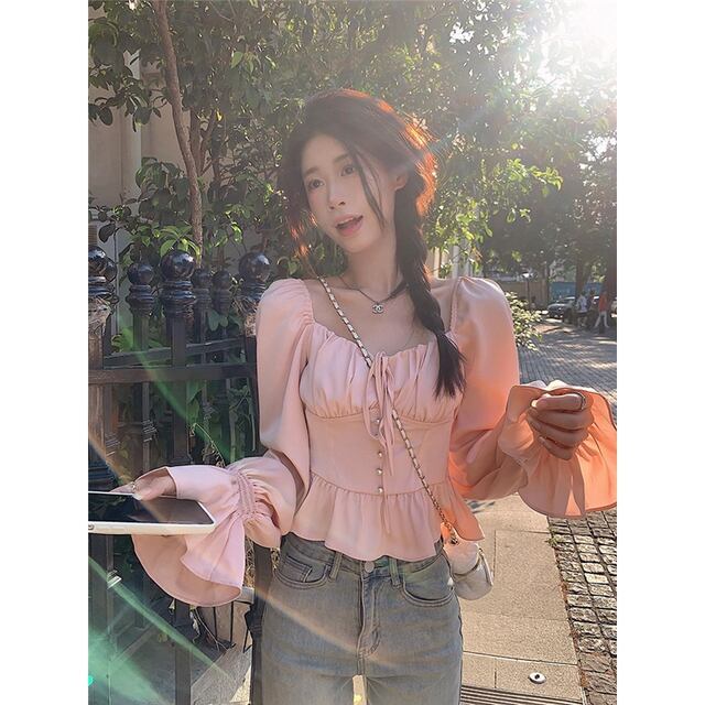このフレンチスタイルのブラウスは、独自のニッチなデザインが魅力的です!柔らかな生地が体に優しくフィットし、女性らしさを演出します。また、ウエストリボンにより、メリハリのあるシルエットが生まれ、トレンドを感じさせる一着に仕上げています。デニムやスカートなど、さまざまなボトムスとのコーディネートを楽しめるため、このブラウスで秋のスタイリングを心ゆくまでお楽しみください!