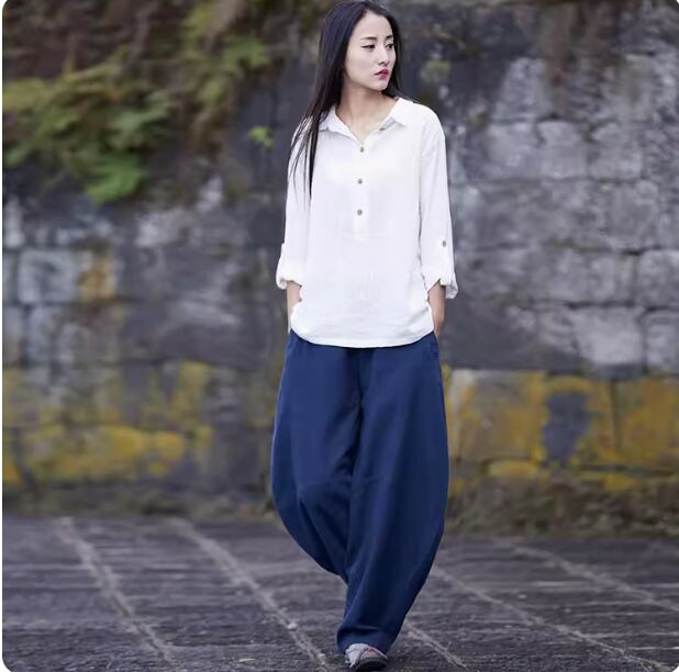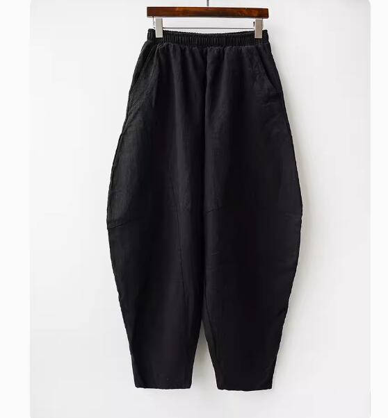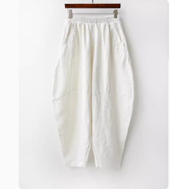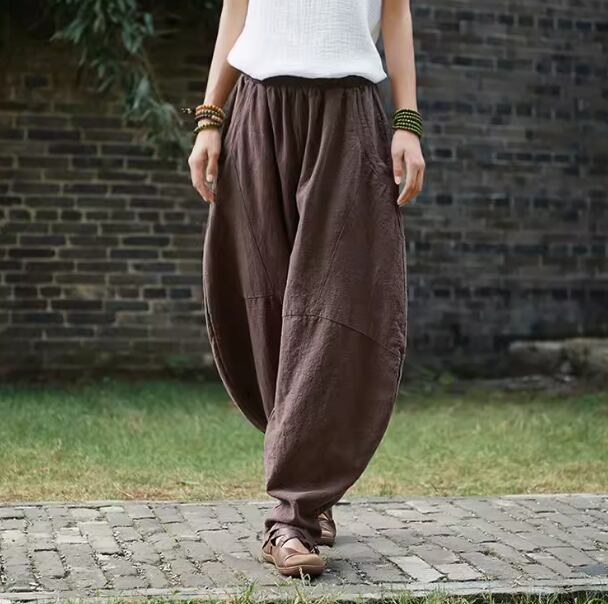 暑い季節にも涼しく快適な着心地を叶える、コットンとリネンのサルエルのようなゆったりシルエットのパンツ。