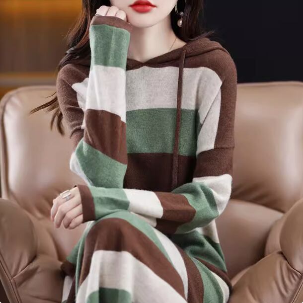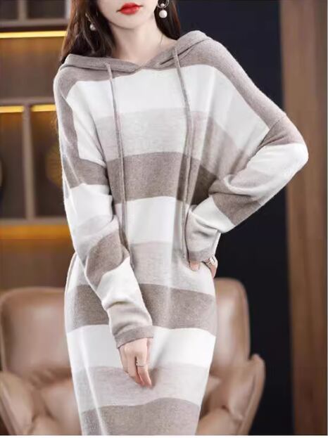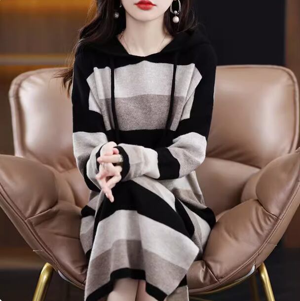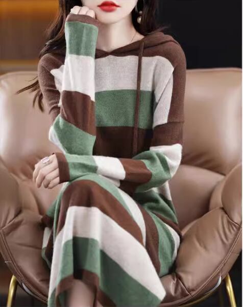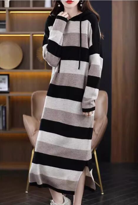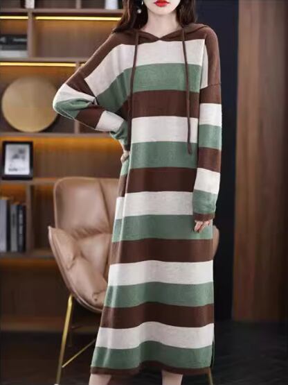 ワンピース ニットワンピース カジュアルワンピース ロング丈 長袖 袖あり ラウンドネック 襟なし セミフレア Aライン 綿 大人可愛い シンプル カジュアル おしゃれ レトロ アジアン エスニック エキゾチック ラフ ルーズ 個性的 ナチュラル ボーダー 秋 冬 レディース 女性用 20代 30代 通勤 デート お出かけ 旅行 公園 休日 ショッピング カフェ 暖かい 普段使い フリーサイズ ブラック ブラウン ベージュ