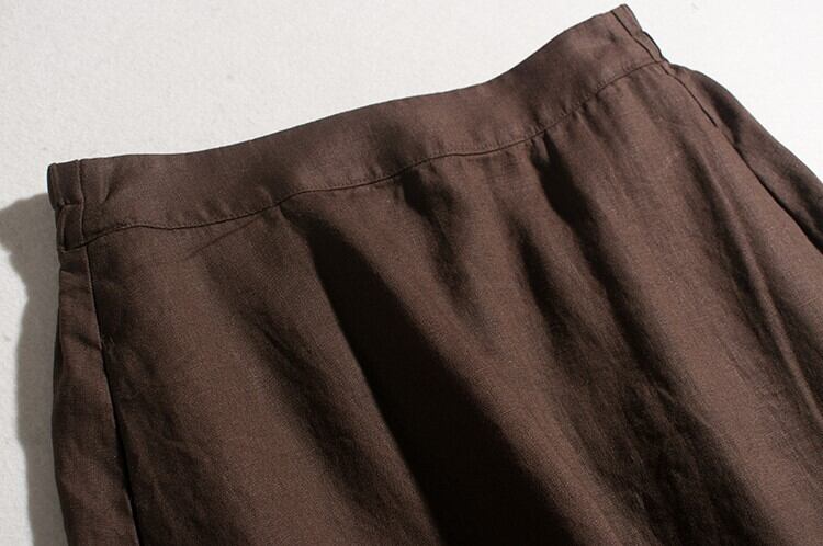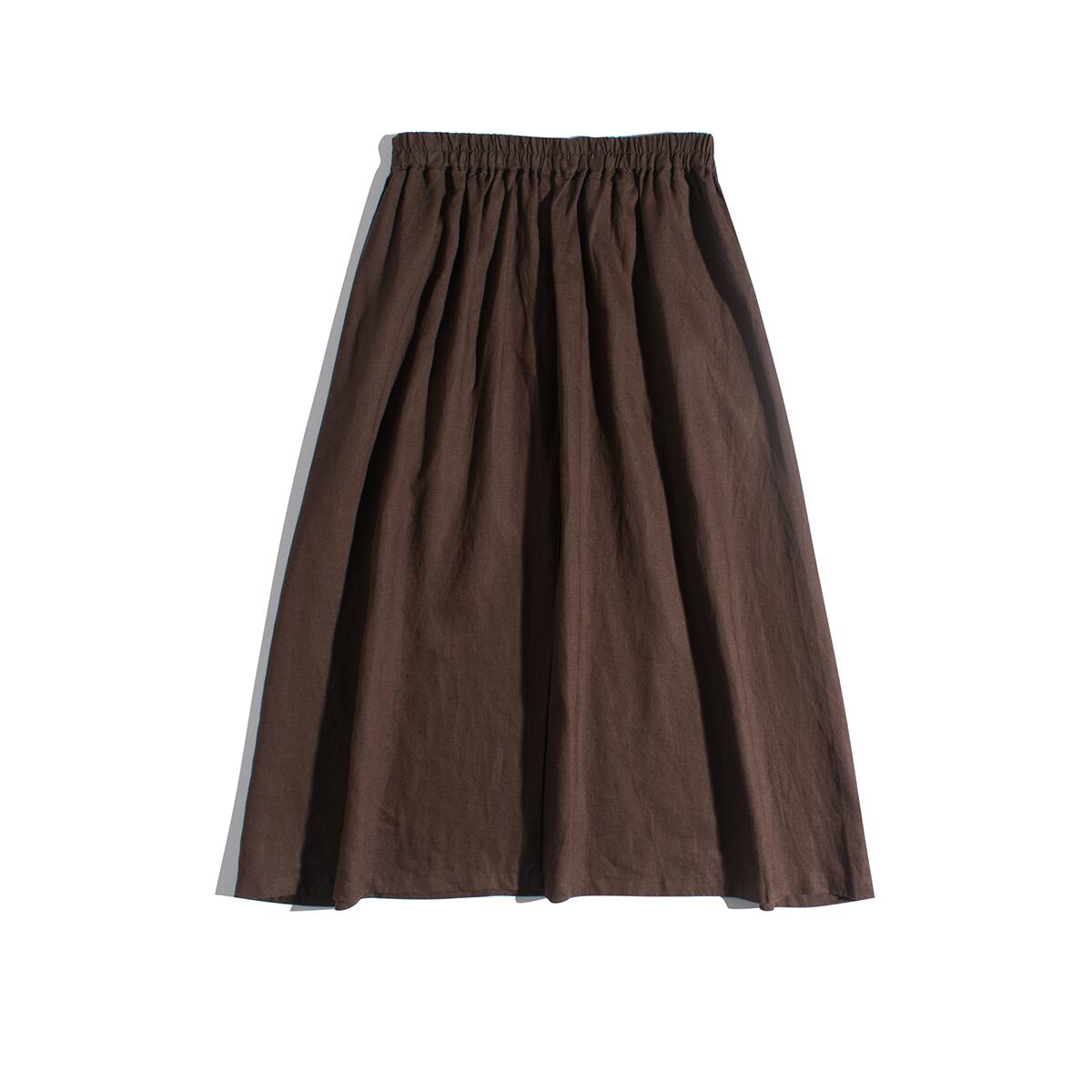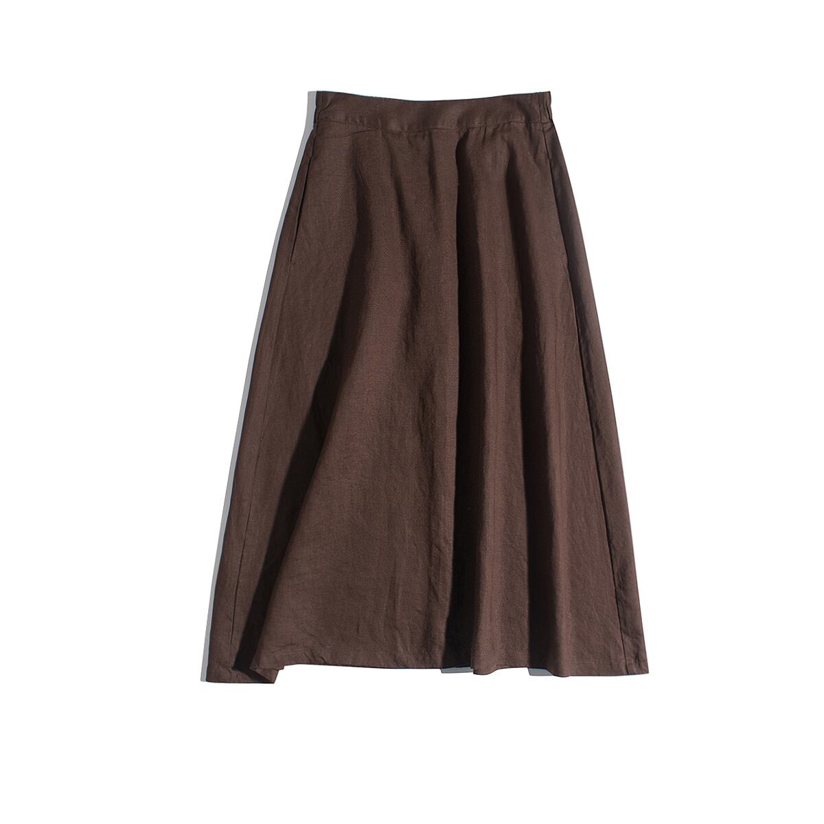 リラックス感漂うリネンスカート。ハイウエストでウエストゴム仕様なので、着心地は抜群。Aラインのシルエットで体型カバーも◎。シンプルなデザインなので、どんなトップスとも相性抜群です。