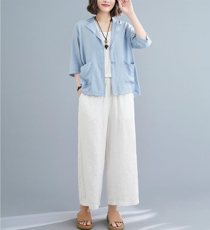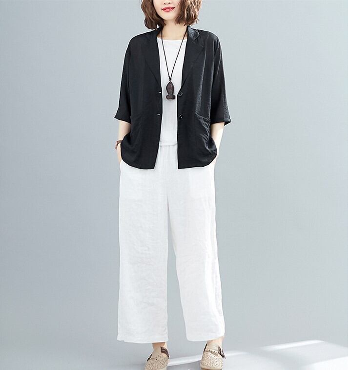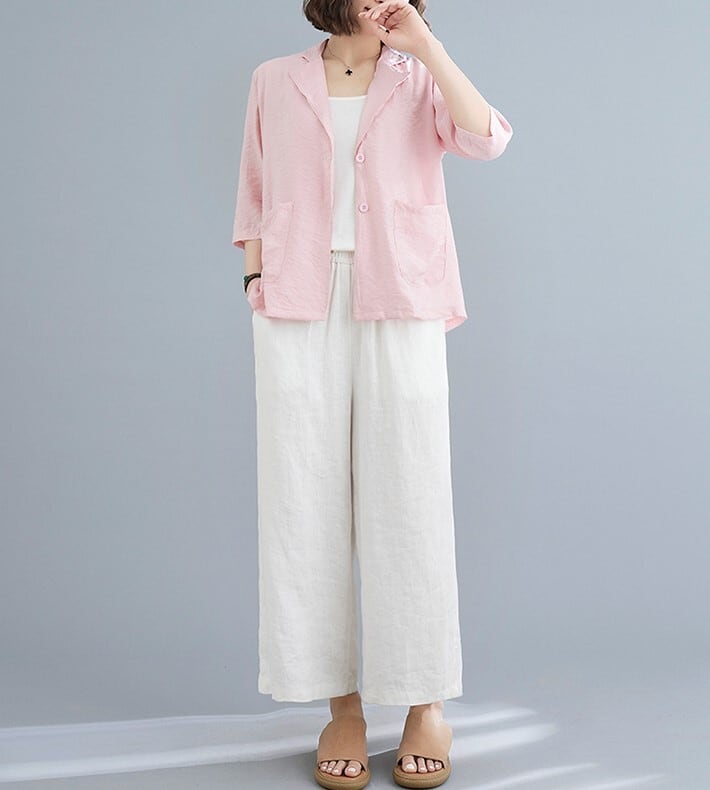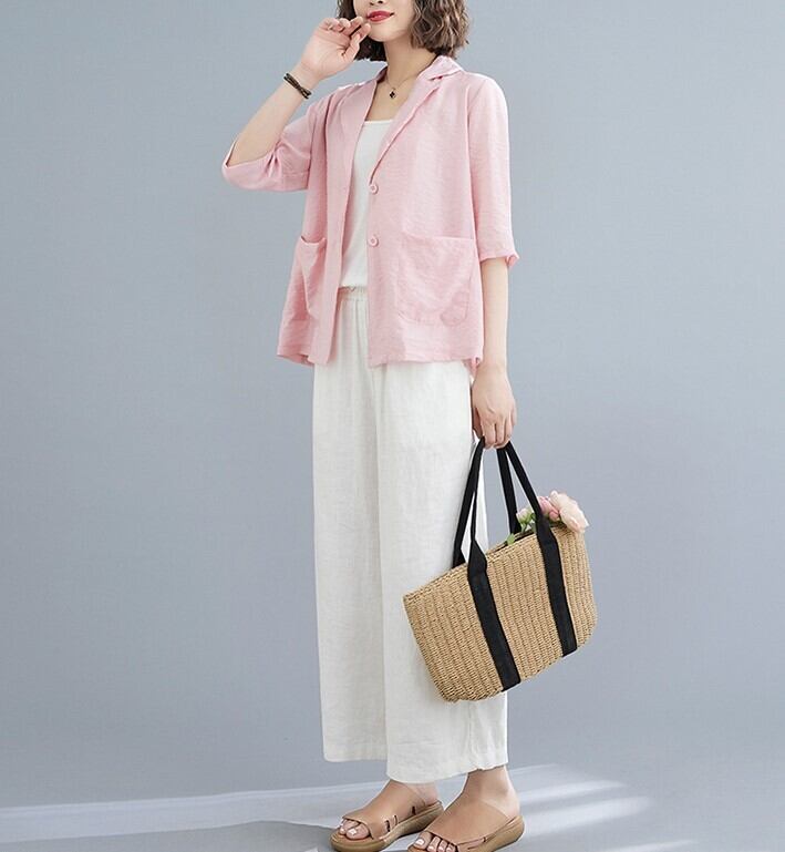 レディース ジャケット テーラードジャケット レギュラー丈 5分袖 スーツ襟 ストレート シングルブレスト ボタン リネン かわいい 大人可愛い きれいめ シンプル カジュアル 上品 おしゃれ レトロ ガーリー ルーズ ラブリー キュート ナチュラル 無地 春 夏 ママ 通勤 学生 学校 通学 デート お出かけ 女子会 ショッピング カフェ 韓国 コーデ 楽ちん 体型カバー 普段使い 着回し モテ トレンド 流行 インスタ映え L XL ゆったり ホワイト ブラック ピンク ブルー レッド 春カラー