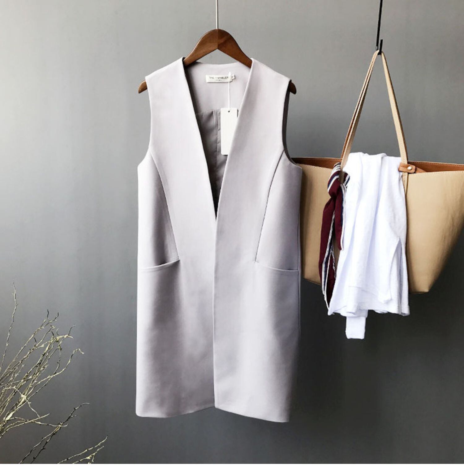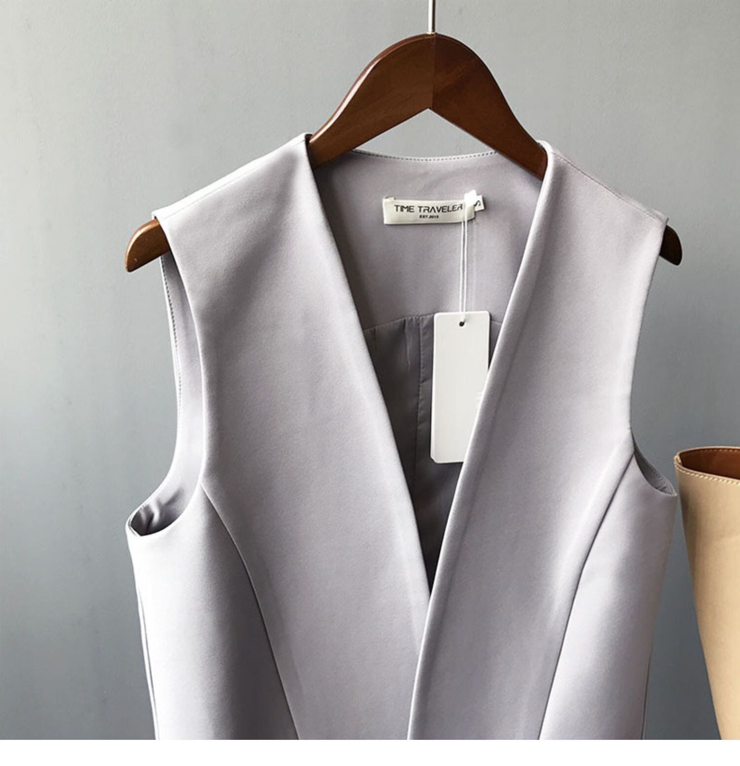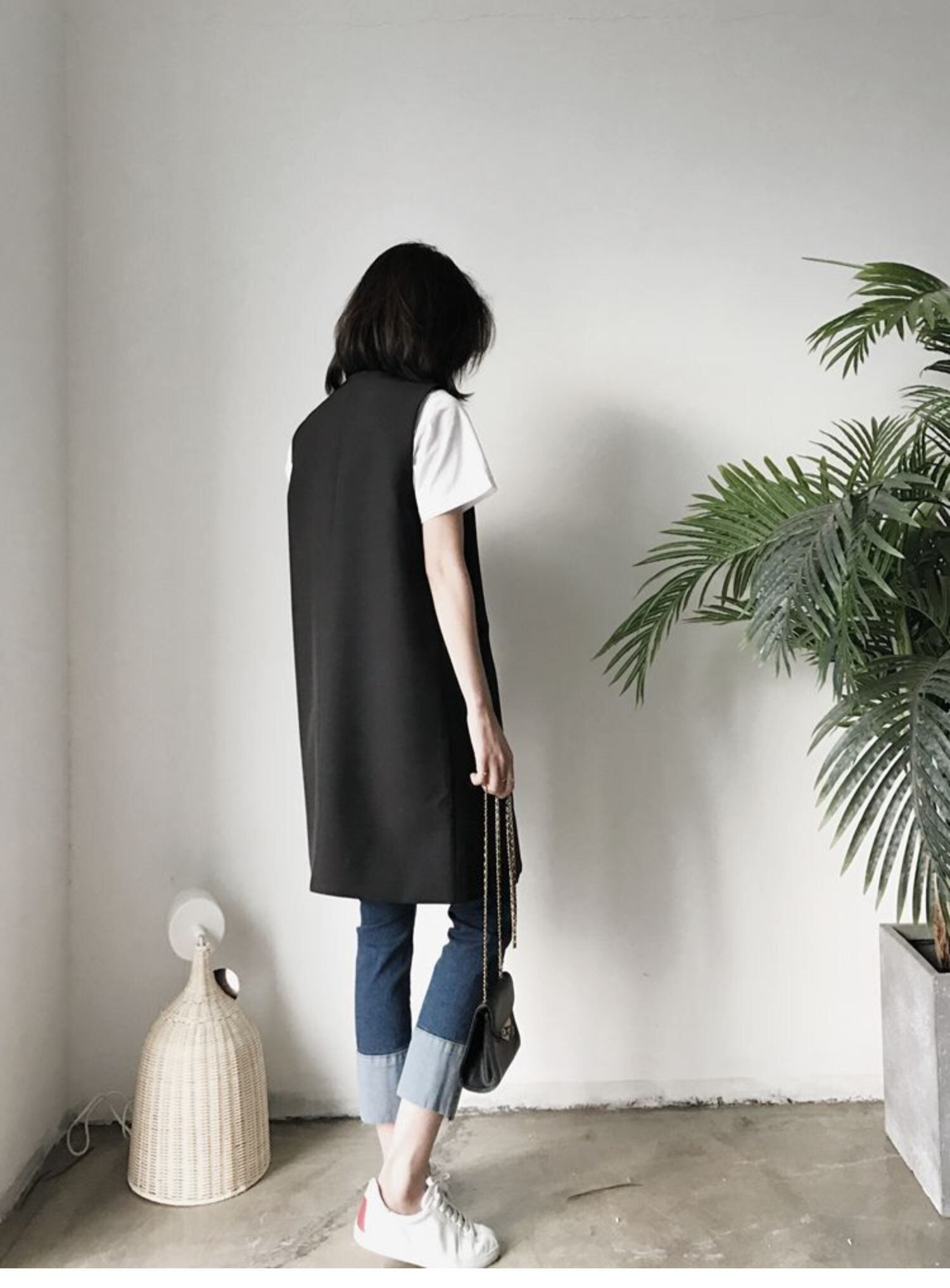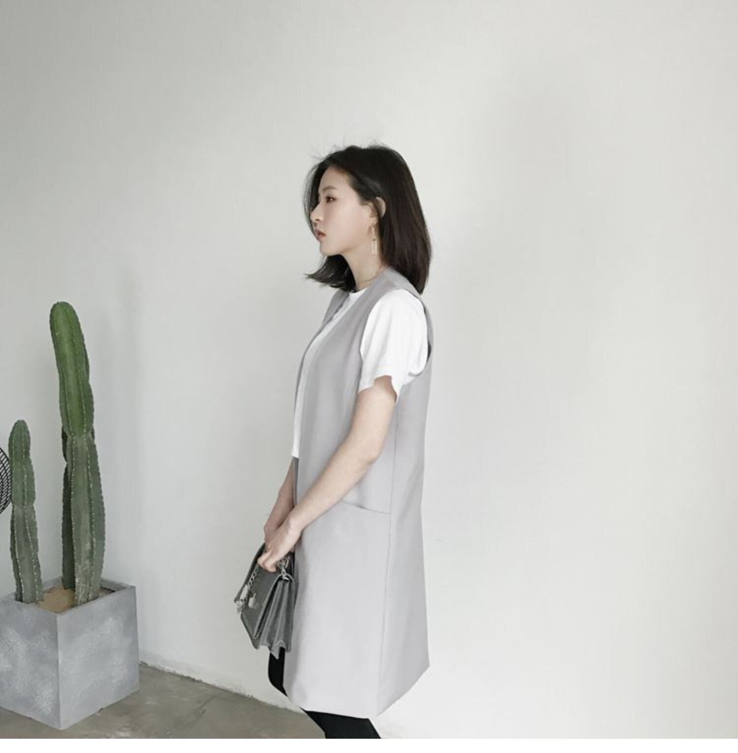 シンプルで大人女子な雰囲気漂う、女性らしいIラインベスト。ミディアム丈で、シャープなスタイルを演出。袖も襟もないデザインは、さりげなくおしゃれな印象を与えます。華奢なシルエットで、上品かつ洗練されたスタイリングが叶います。