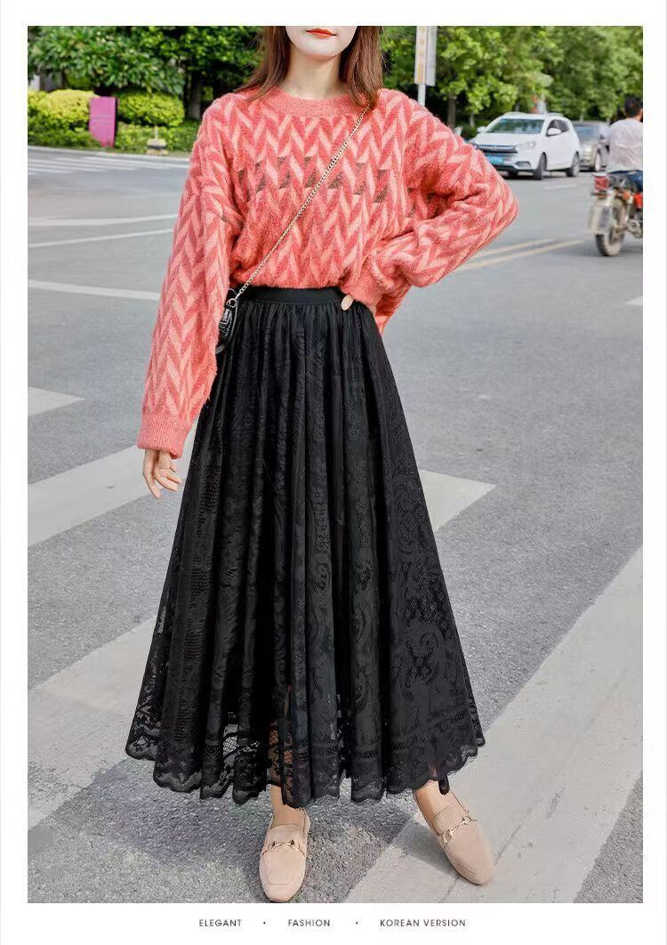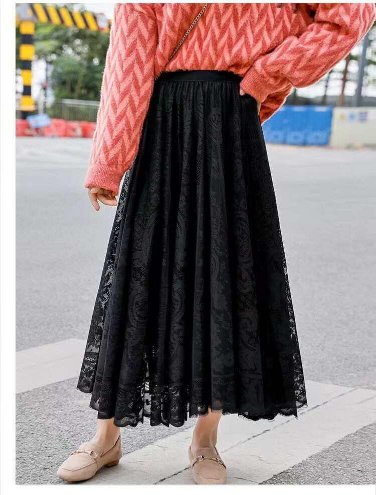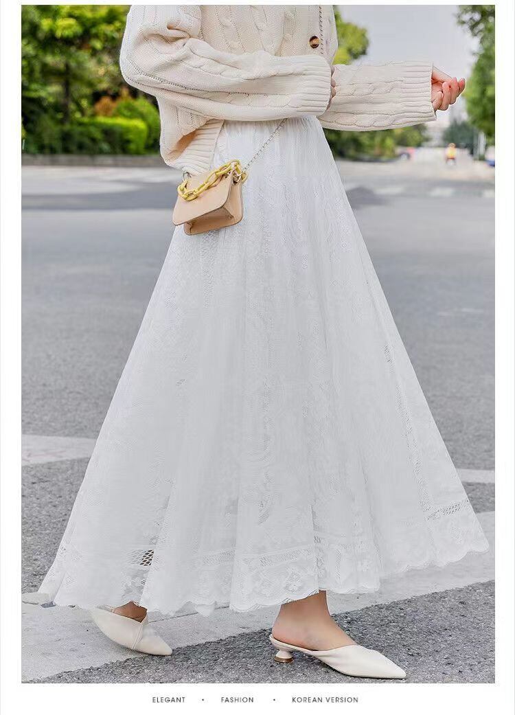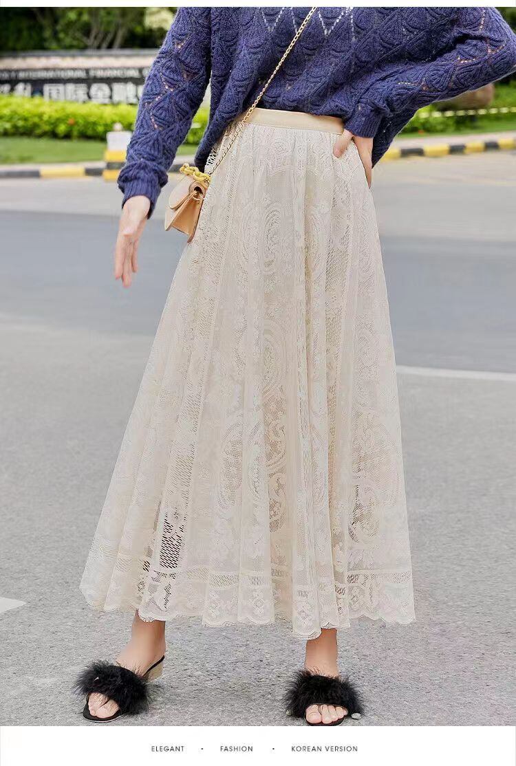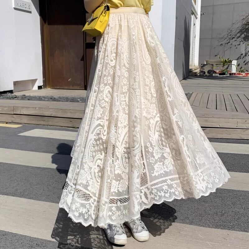 女性らしさを引き立てる一枚、デートや女子会にぴったりのレースロングスカート。ウエストから広がるフレアスカートで、美しいAラインシルエットを演出します。ロング丈なので、華やかな印象を与えながら、上品さも兼ね備えています。デートやお出かけにはもちろん、普段使いにも活躍するアイテムです。