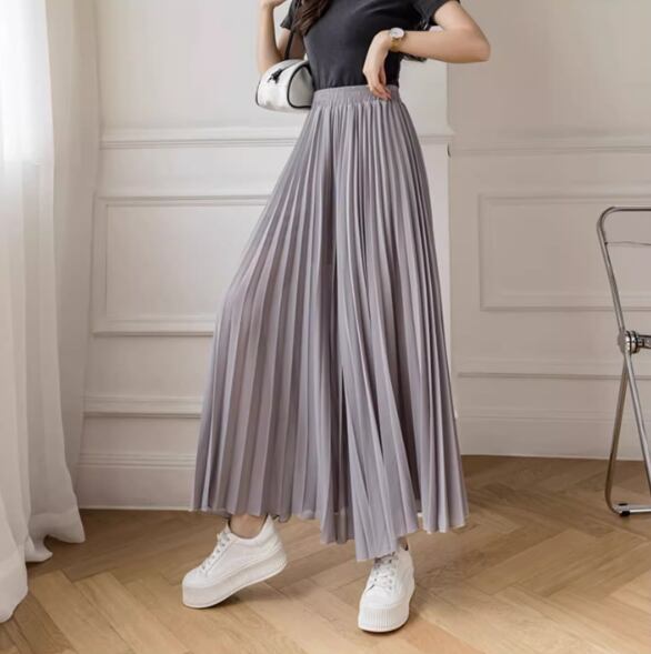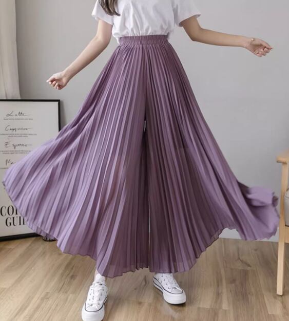 ハイウエストにゴムが付いたレディース パンツ ボトムス ガウチョパンツは、女性らしさを引き立てるAラインのデザインが特徴です。裾にかけて広がるフレアシルエットで、フェミニンな雰囲気を演出します。シフォン素材を使用し、軽やかで涼やかな履き心地が魅力。ウエスト部分のゴム仕様で、快適な着心地を実現しました。