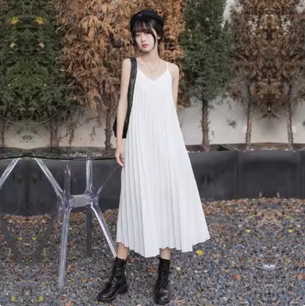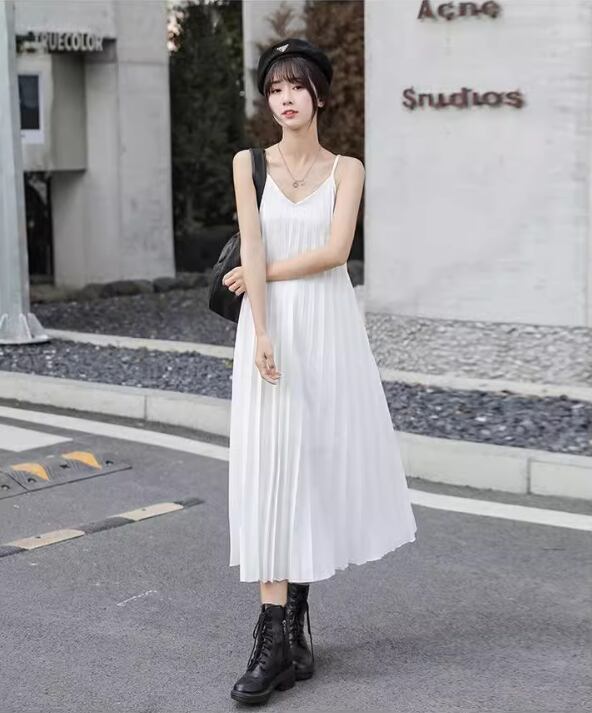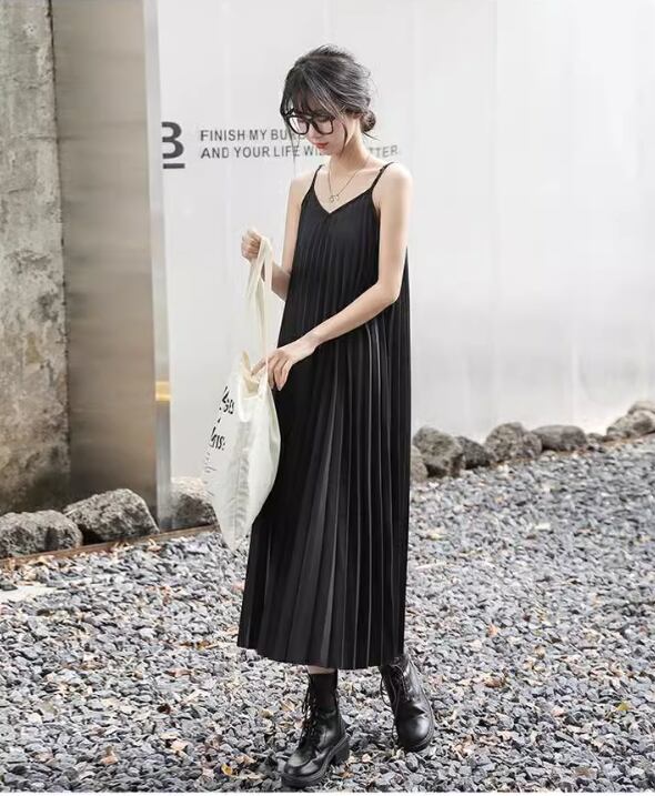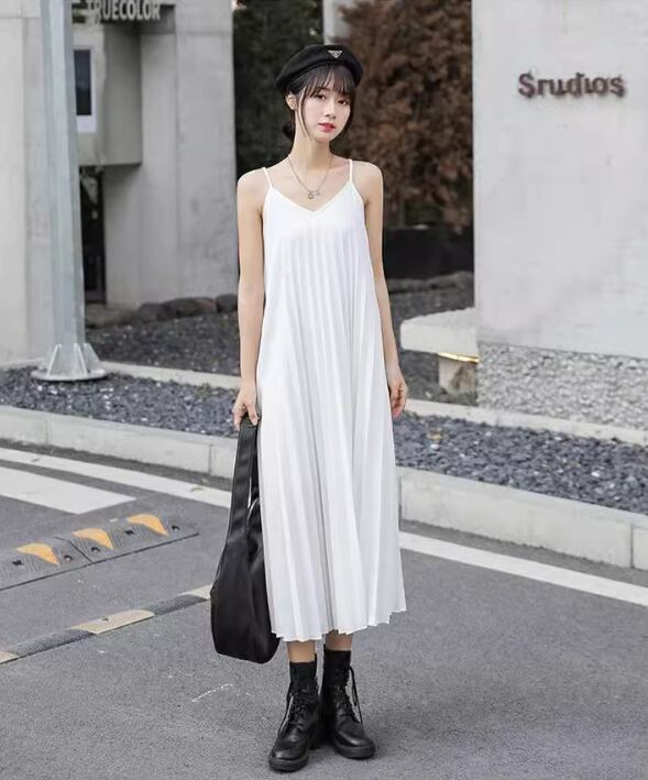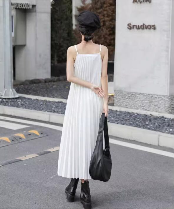 ワンピース キャミソールワンピース ミディアム丈ワンピース ニ ミディアム丈 袖なし Uネック プリーツ かわいい 大人可愛い きれいめ シンプル 上品 おしゃれ かっこいい レトロ こなれ感 個性的 主役級 存在感 抜け感 無地 春 夏 キュート ナチュラル ベーシック セクシー レディース 女性用 ママ マタニティ OL 通勤 学生 通学 デート お出かけ お泊まり イベント 女子会 休日 カフェ ショッピング 旅行 リゾート コンパ 普段使い 着回し 重ね着 脚長 M L ホワイト ブラック