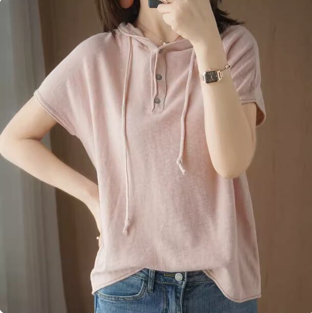 パーカー Tシャツ レディース 半袖 カットソー 夏 カジュアル トップス フード付き おしゃれ ゆったり 大きいサイズ 着回し S M L XL 2XL レッド ピンク イエロー グレー 肩幅 ブルー ディープカーキ