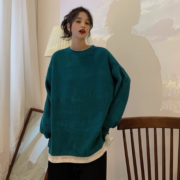 トップス トレーナー スウェット 長袖 ラウンドネック 袖フリル 重ね着風 かわいい 大人可愛い きれいめ シンプル カジュアル 上品 おしゃれ かっこいい 大人女子 こなれ感 個性的 ラフ 主役級 存在感 キュート ガーリー 清楚 ナチュラル ベーシック 無地 レディース 秋 冬 OL 通勤 オフィス ビジネス OL 通勤 学生 通学 ママ デート お出かけ お泊まり イベント 女子会 休日 カフェ ショッピング 旅行 リゾート コンパ レストラン 重ね着 普段使い 着回し M L XL 2XL