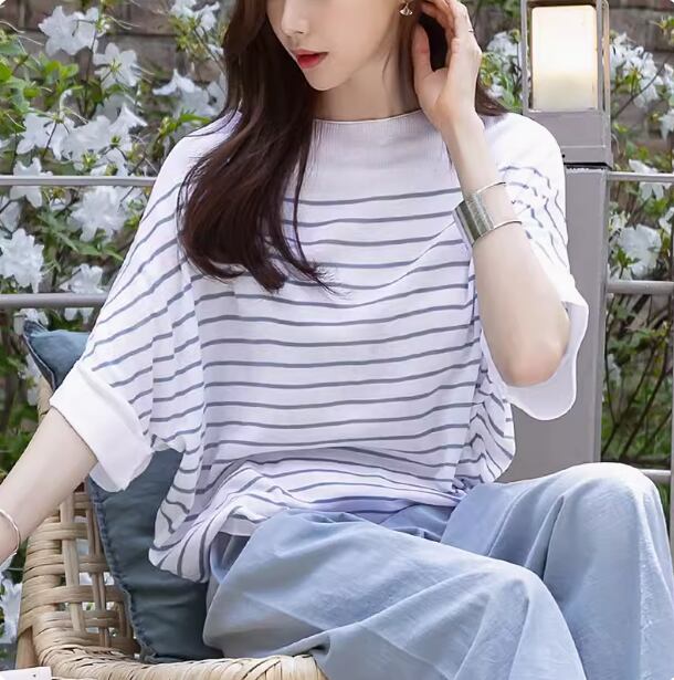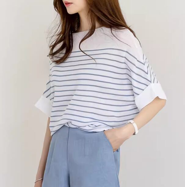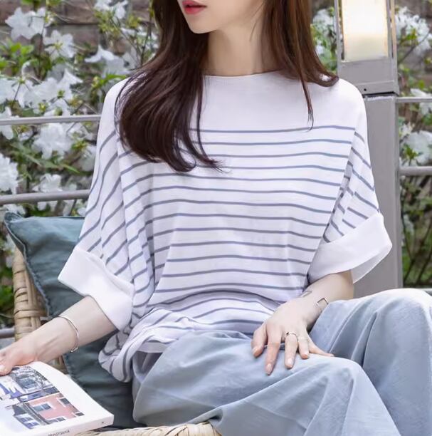 トップス カットソー プルオーバー ミディアム丈 袖あり 半袖 Uネック ラウンドネック 襟なし ストレート ワイド 薄手 大人可愛い シンプル カジュアル 大人 おしゃれ 大人女子 こなれ感 ラフ ルーズ ボーダー シマ 春 秋 10代 20代 30代 40代 レディース 女性用 ママ 通勤 学生 通学 デート お出かけ 女子会 休日 普段使い 重ね着 ファッション コーデ スタイル S M L XL ブルー ブラック