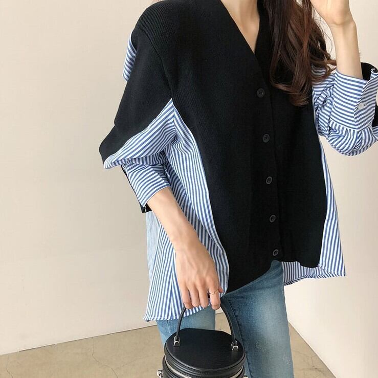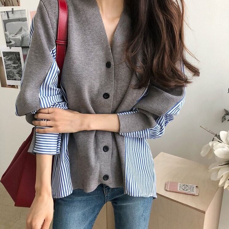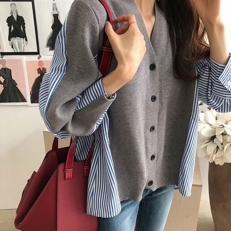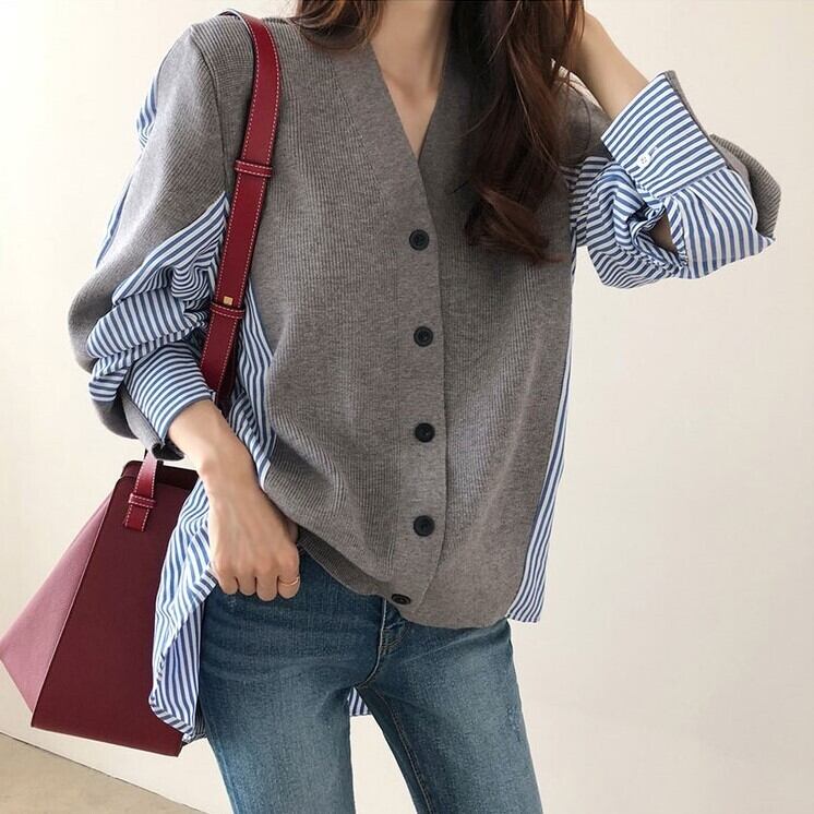 レディース トップス ニット カーディガン 羽織 ショート 長袖 Vネック ストレート シングルブレスト ボタン 異素材ミックス かわいい 大人可愛い きれいめ シンプル カジュアル 上品 おしゃれ こなれ感 ラフ ガーリー ルーズ ラブリー キュート ナチュラル 無地 ストライプ 春 秋 通勤 学生 学校 通学 デート お出かけ 女子会 ショッピング カフェ 韓国 コーデ 楽ちん 体型カバー 脚長 普段使い 着回し モテ トレンド 流行 インスタ映え S M L XL ゆったり ゆる グレー ネイビー