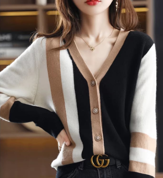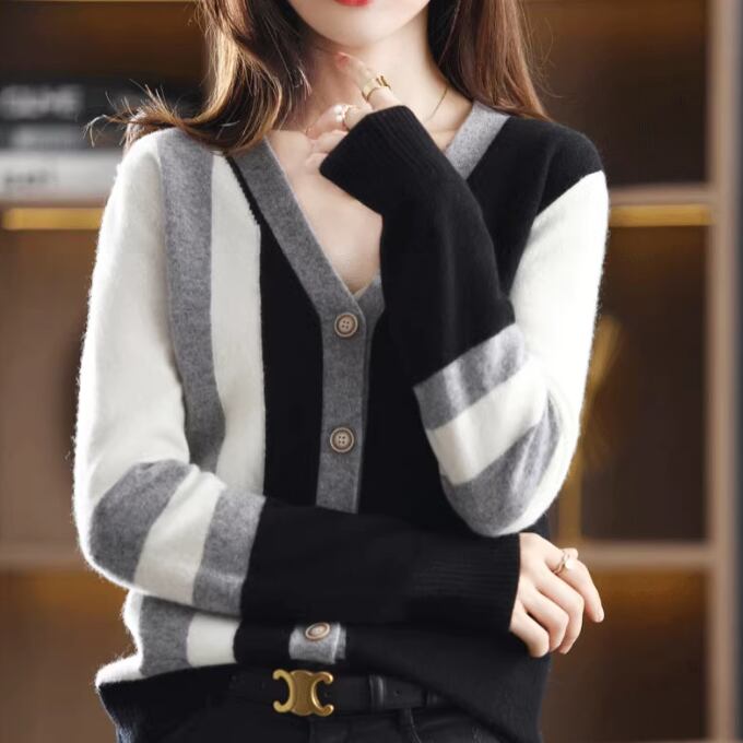 レディース トップス ニット カーディガン 羽織 レギュラー丈 長袖 Vネック ストレート シングルブレスト ボタン 配色 かわいい 大人可愛い きれいめ シンプル カジュアル 上品 おしゃれ こなれ感 ラフ ガーリー ルーズ エレガント キュート ストライプ 春 秋 通勤 学生 学校 通学 デート お出かけ 女子会 ショッピング カフェ 韓国 コーデ 楽ちん 体型カバー 普段使い 着回し モテ トレンド 流行 インスタ映え S M L XL 2XL ゆったり ブラック ブラウン グレー ネイビー