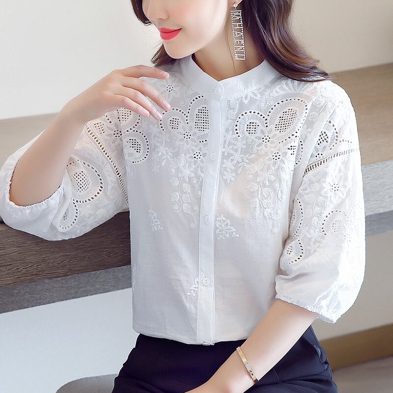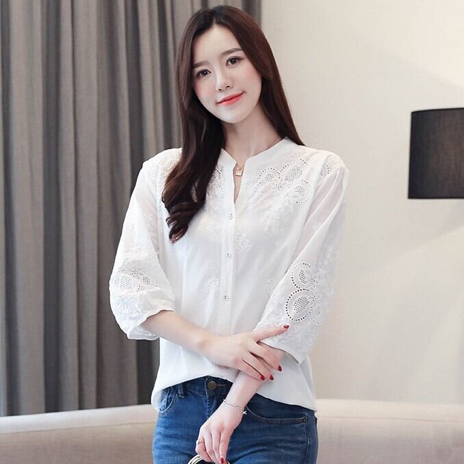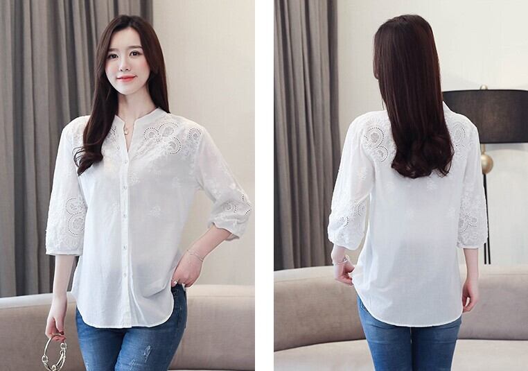 レディース トップス シャツ 7分袖 パフスリーブ Vネック スリム 細身 ストレート 刺繍 ボタン 薄手 コットン かわいい 大人可愛い きれいめ シンプル カジュアル 上品 おしゃれ レトロ こなれ感 ガーリー エレガント ラブリー キュート ナチュラル 無地 春 夏 ママ 通勤 学生 学校 通学 デート お出かけ 公園 女子会 ショッピング カフェ 韓国 コーデ 体型カバー 普段使い 着回し モテ 清楚 トレンド 流行 インスタ映え M L XL 2XL 3XL 大きいサイズ ゆったり ホワイト