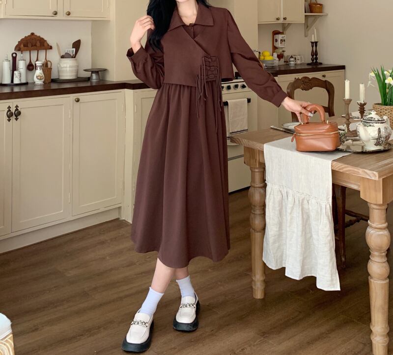 レディース ジャケット ワンピース セットアップ デート 上着 フレアワンピース ワンピドレス ミモレ ミモレ丈 袖あり 長袖 襟付き フレア 切り替えデザイン ウエストリボン 前開き かわいい 大人可愛い きれいめ シンプル カジュアル 上品 おしゃれ お洒落 レトロ 大人女子 こなれ感 ラフ ラブリー キュート ガーリー 個性的 クール モード系 エレガント モダン 主役級 存在感 抜け感 レディース デート お出かけ 女子会 休日 着回し コーデ モテ 定番 トレンド インスタ映え 色展開