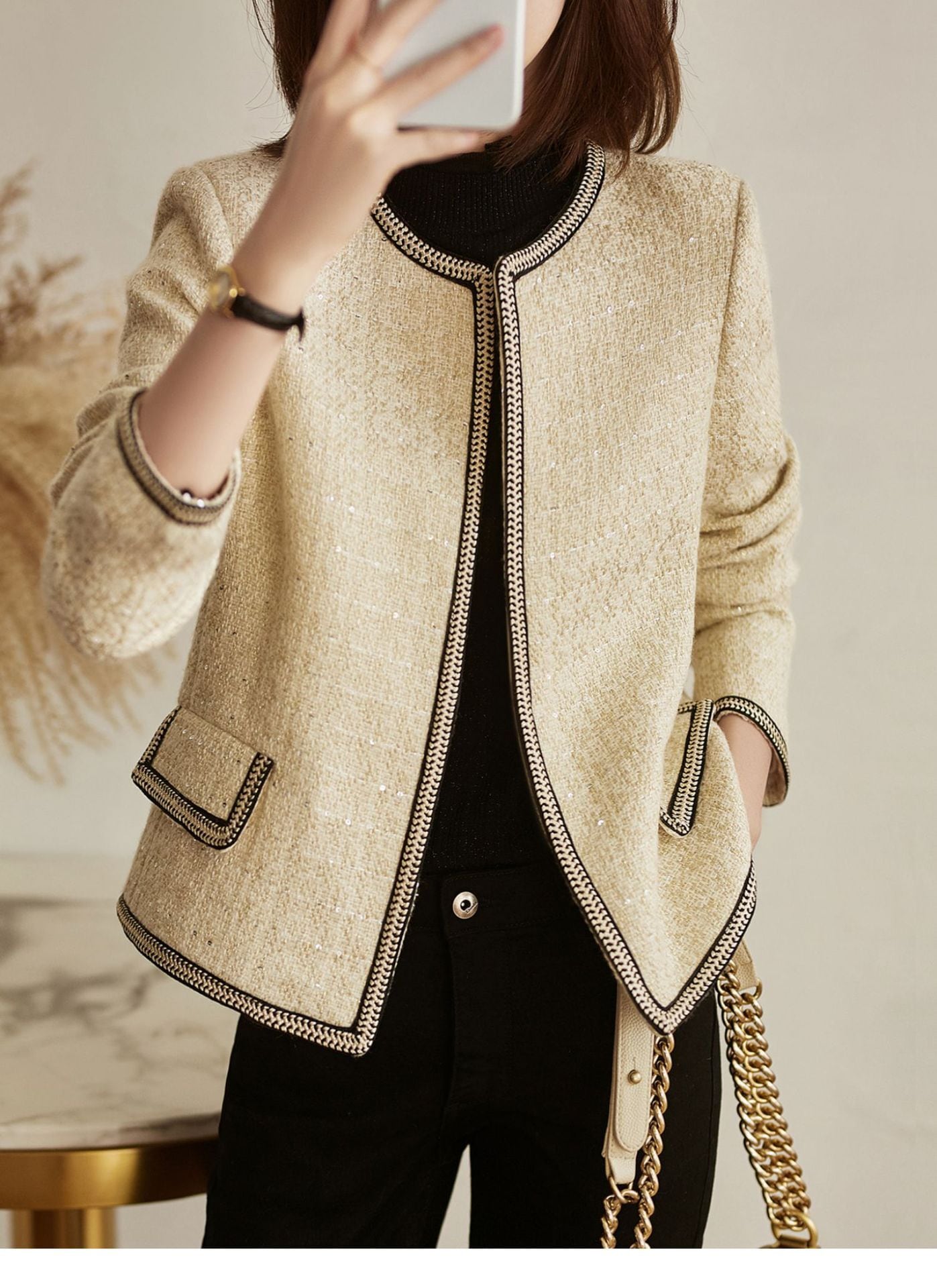 レディース ジャケット デート 上着 ミディアム丈 袖あり 長袖 襟なし 切り替えデザイン 前開き かわいい 大人可愛い きれいめ シンプル カジュアル 上品 おしゃれ お洒落 レトロ 大人女子 こなれ感 ラフ ラブリー キュート ガーリー 個性的 クール モード系 エレガント モダン 主役級 存在感 抜け感 レディース デート お出かけ 女子会 休日 着回し 普段使い ファッション コーデ スタイル モテ プレゼント 定番 トレンド インスタ映え