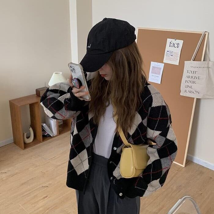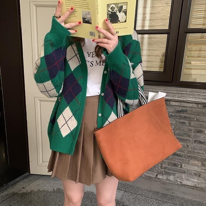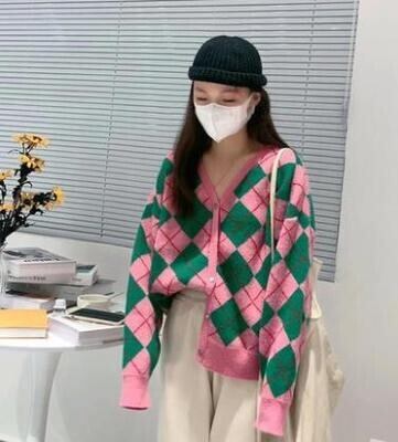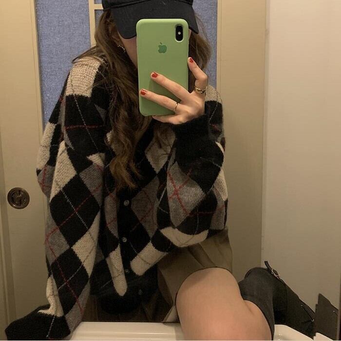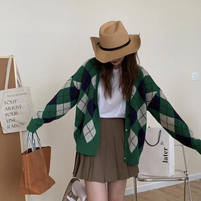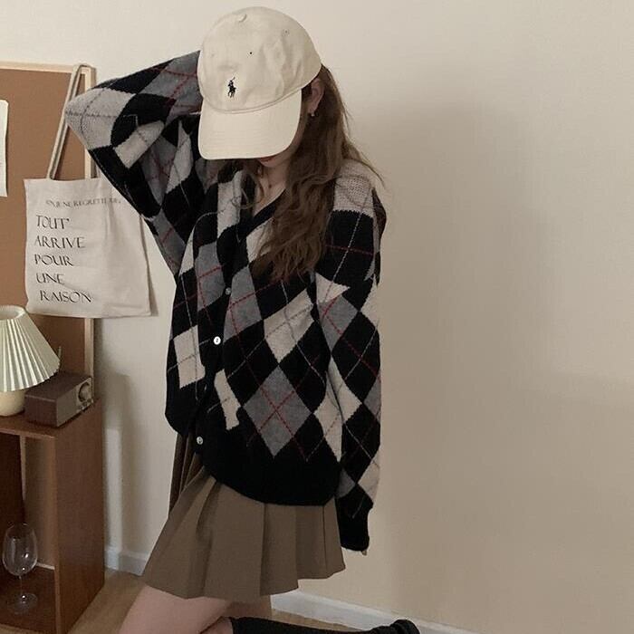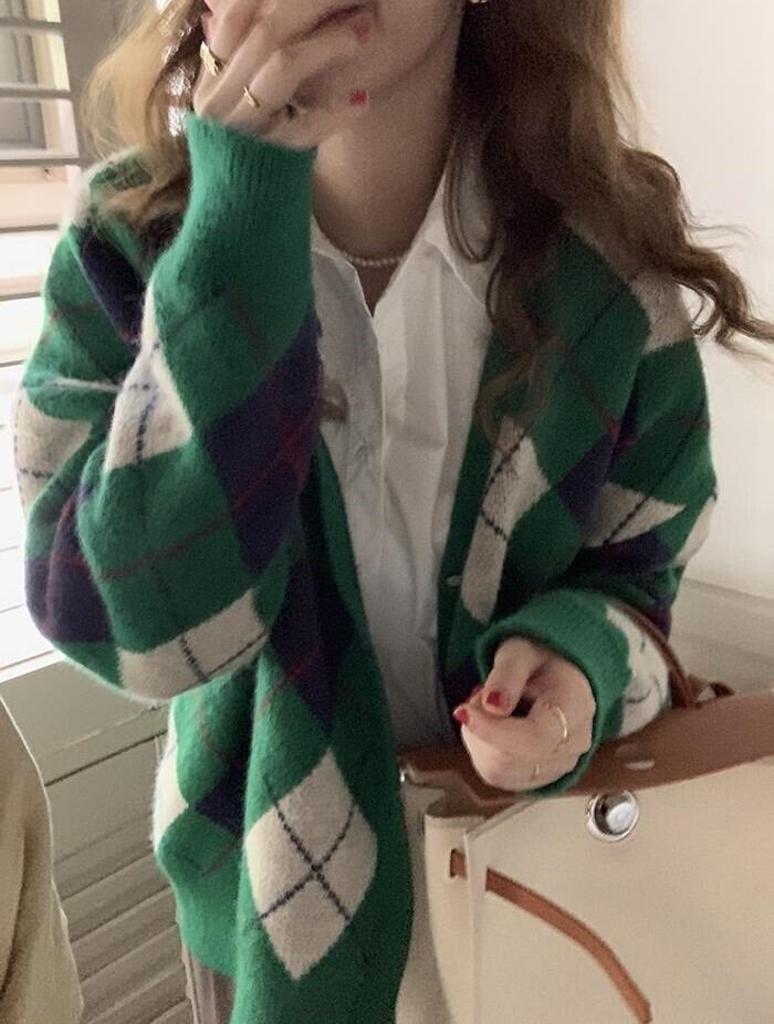 レディース トップス ニット カーディガン 羽織 長袖 Vネック ストレート オーバーサイズ シングルブレスト かわいい 大人可愛い きれいめ シンプル カジュアル おしゃれ レトロ こなれ感 ラフ ガーリー ルーズ 抜け感 ラブリー キュート ナチュラル チェック アーガイル柄 春 秋 通勤 学生 学校 通学 デート お出かけ 女子会 ショッピング カフェ 韓国 コーデ 楽ちん 体型カバー 普段使い 着回し モテ トレンド 流行 インスタ映え S M L ゆったり ブラック カーキ ピンク グリーン