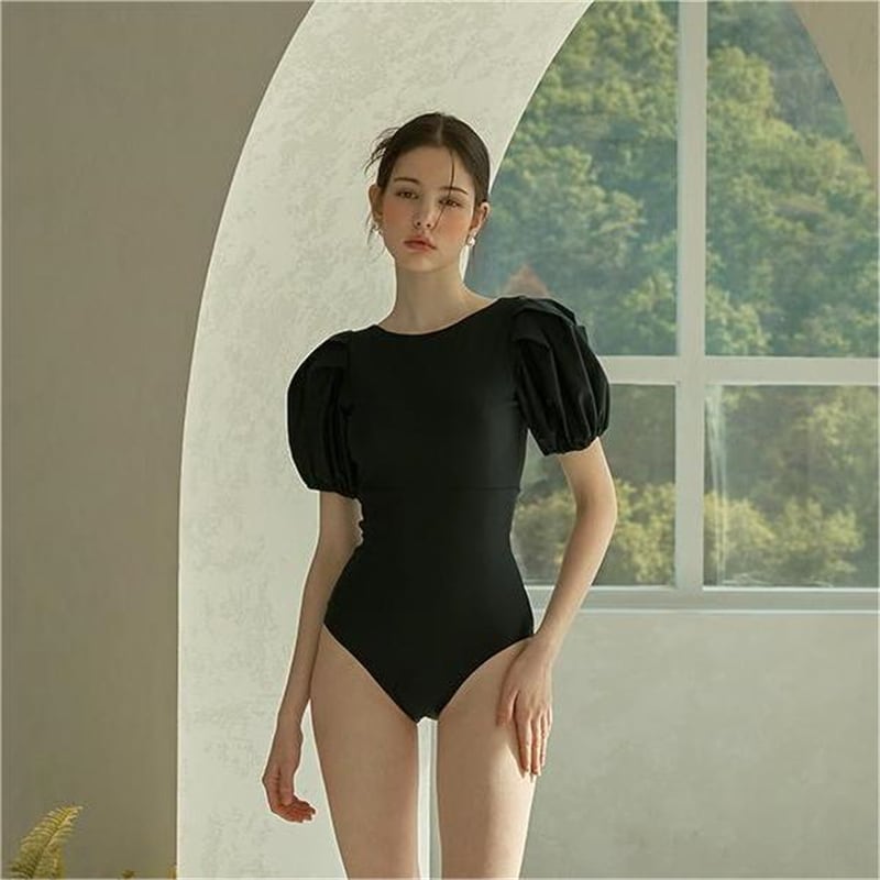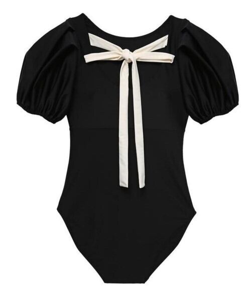 水着 スイムウェア レディース ワンピース 体型カバー 三角ワンピース パッド付き 二の腕カバー 半袖 バックリボン ハイウエスト バックレス かわいい 大人可愛い きれいめ シンプル カジュアル ナチュラル 大人っぽい おしゃれ お洒落 レトロ ラブリー キュート ガーリー セクシー エレガント 無地 リゾート 旅行 プール 夏 海 30代 脚長 着痩せ スタイルアップ 韓国 モテ 背中見せ 体型カバー インスタ映え スタイルカバー こなれ感 M L XL ブラック